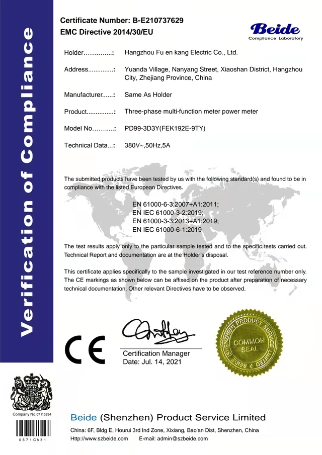 杭州富恩康电器有限公司坐落于天堂古镇---浙江省杭州市萧山区楼塔镇大同三村华艺智能制造产业园。是一家专业生产智能电力仪器仪表的创新型企业。曾长期从事OEM(贴牌)生产,产品质量稳定可靠,深受广大用户的信赖和好评。