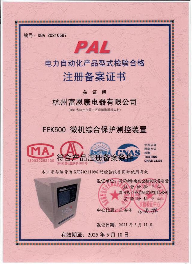 2008年,公司注册了自己的品牌---FEK(富恩康)。主要生产有:FEK19、FEK18系列智能电力仪表;FEK3000后台监控软件系统;FEK-SK、FEK-WK凝露、温湿度监控仪;EKL1、EKL2、EKL3、EKL4系列短路接地故障指示器;FEK-HK-1、FEK-HK-2、FEK-HK-3系列开关柜智能操控装置;LM300H、LM310H、LM510H系列智能电动机保护器;DDS13521、DTS13521系列导轨式电能表;FEK501、FEK601系列微机保护测控装置等系列产品。广泛应用于电力、冶金、石化、国防、水利等行业。