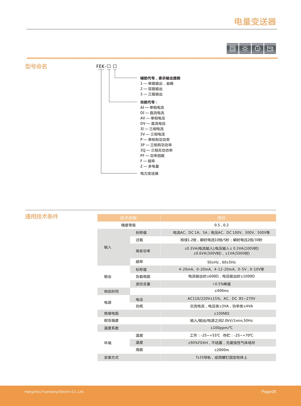 FEK系列电力变送器是一种将电网中的电流、电压、频率、功率、功率因数等电参量,经隔离变送成线性的直流模拟信号或数字信号装置。产品符GB/T138501998、IEC-688标准。