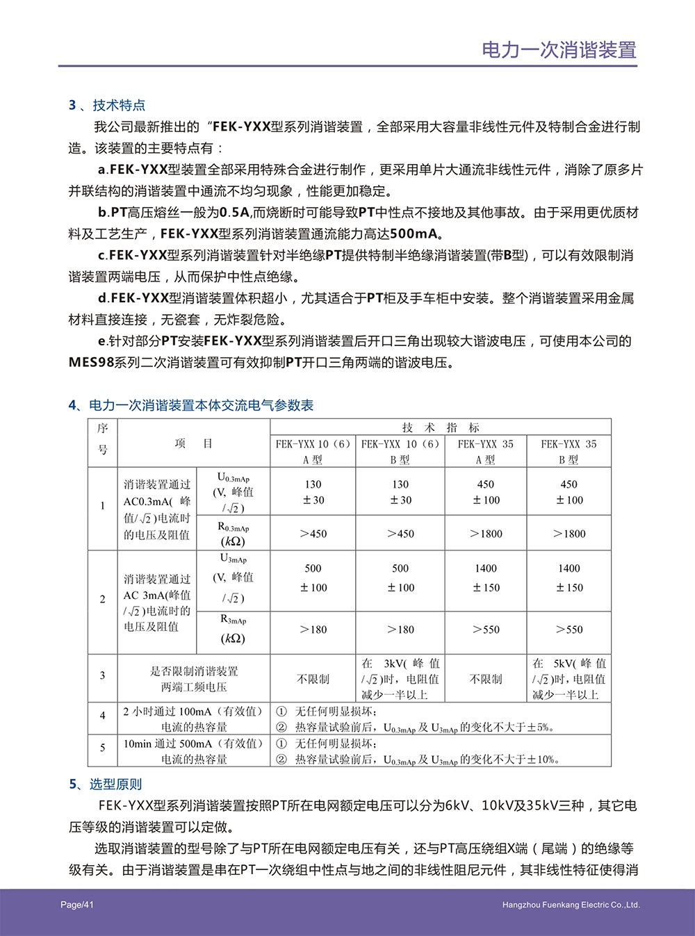 6~ 35kV中性点不接地电网中的电磁式电压互感器(以下简称PT)有二个相关问题需解决:a.PT的铁磁谐振产生的过电压常使设备内绝缘击穿、外绝缘放电,且常因事故处理不及时或事故扩大而造成大面积停电;b.电网中的弧光接地使PT频频烧毁。使用FEK-YXX( A)型、FEK-YXX(B)- -次消谐装置可有效地解决上述问题: 1.消除或阻尼PT非线性励磁特性而引起的铁磁谐振过电压,这种谐振过电压会导致系统相电压不稳定;2.能有效地抑制间隙性弧光接地时流过PT绕组的过电流,防止PT的烧毁; 3、限制系统单相接地消失时在PT-次绕组回路中产生的涌流,这种涌流会损坏PT或使PT熔丝熔断;4、当系统发生单相接地后可较长时间保护PT免受损坏。FEK-YXX(A)型、FEK-YXX(B)型一 次消谐装置,是安装在6 ~ 35kV PT- -次绕组Y0接线中性点与地之间的高容量非线性元件,起阻尼与限流的作用。该消谐装置完全符合现行电力部标准DL/T 620- 1997 《交流电气装置的过电压保护和绝缘配合》第4.1.5 条中的规定,可以起到良好的限制电压互感器铁磁谐振的效果。